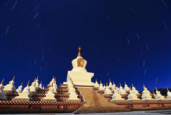 這一天我們的車將行駛在素有“世界屋脊”“世界第三極”的青藏高原。早餐后欣賞“光與影的世界”【新都橋】,翻越【高爾寺山】(海拔4412米),若天氣晴朗,則有幸在山頂一睹蜀山之王【貢嘎山的風(fēng)采】(四川最高峰,海拔7556米,高高的山峰聳立天際,非常的壯觀)抵雅礱江畔康巴小城【雅江】后穿越【剪子彎山隧道】(長228米)接著翻越【卡子拉山】(海拔4718米),來到有著“高原明珠”“世界高城”之稱的【理塘】途中自費(fèi)參加茶馬古道生活體驗(yàn)營或天域牧場(自助石板燒烤、穿藏裝、騎馬)觀【毛埡大草原】風(fēng)光,給你一種想策馬奔騰的感覺,感受了遼闊的大草原,我們將翻越形是兔子的【兔兒山】,遠(yuǎn)觀就像兔子的耳朵特別的可愛。之后翻越最為壯觀的、青藏高原最大的古冰體遺址稻城古冰帽【海子山自然保護(hù)區(qū)】(海拔4500米)。(海子山是由1145個大小海子和嶙峋怪石組成。猶如上帝失手撒下的一千顆鉆石一般閃爍在山間,其規(guī)模密度為中國乃至世界規(guī)模最大最典型的古冰帽遺跡,精妙絕倫的天然巖畫—鹿子圖騰)。后前往桑堆高原補(bǔ)氧站(高原旅游知識宣傳點(diǎn))時間10-20分鐘、之后欣賞沿途迷人風(fēng)光、世外桃源般藏式村寨,觀稻城尊勝白塔后,抵達(dá)最后的香巴拉【稻城】。